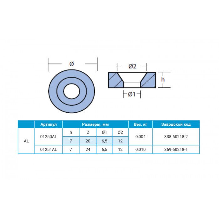 Анод алюминиевый Tohatsu / Nissan 338-60218-2 (10269841). Анодный протектор из алюминия для подвесных лодочных моторов
