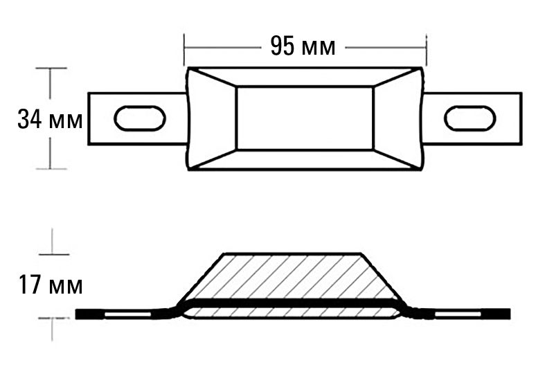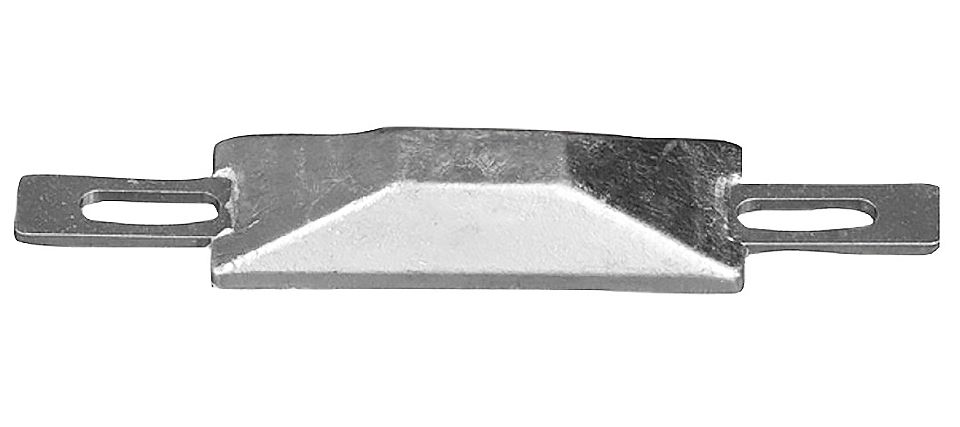 Анод цинковый прямоугольный с крепежной пластиной (10014637). Анод цинковый прямоугольной формы. Имеет крепежную пластину из оцинкованной стали. Применяется для защиты корпуса судна и его механизмов от электролитической коррозии. Общая длина с пластиной: 180ммДлина анода: 95мм.Ширина анода: 34мм.Масса: 250 г.