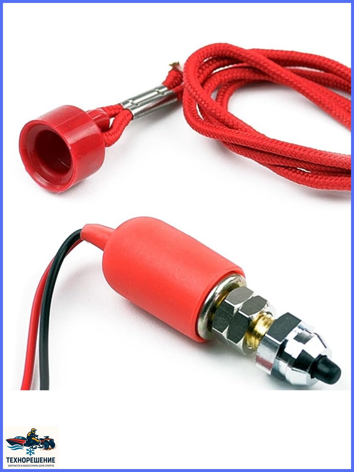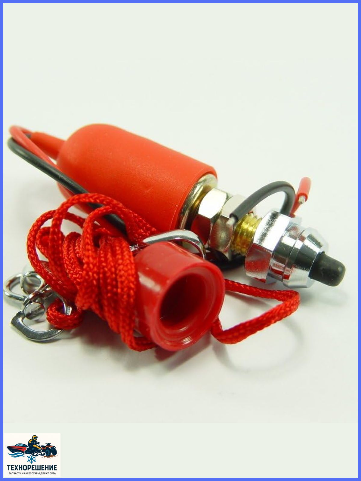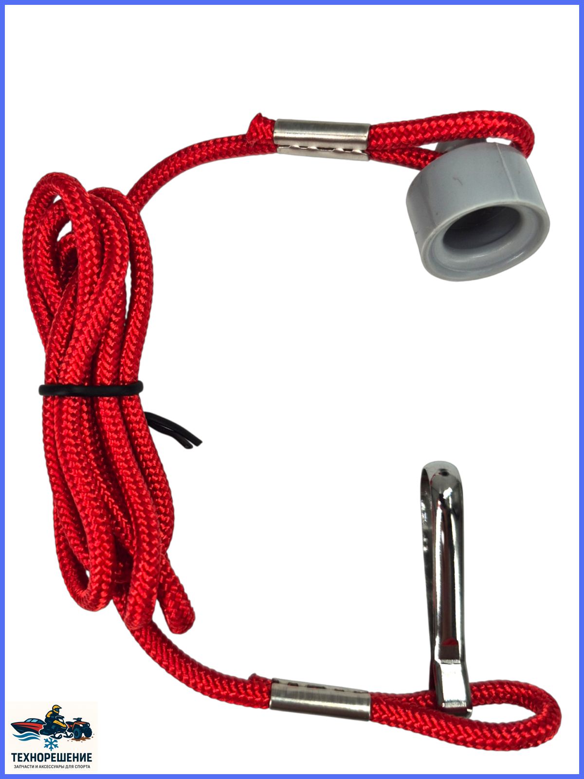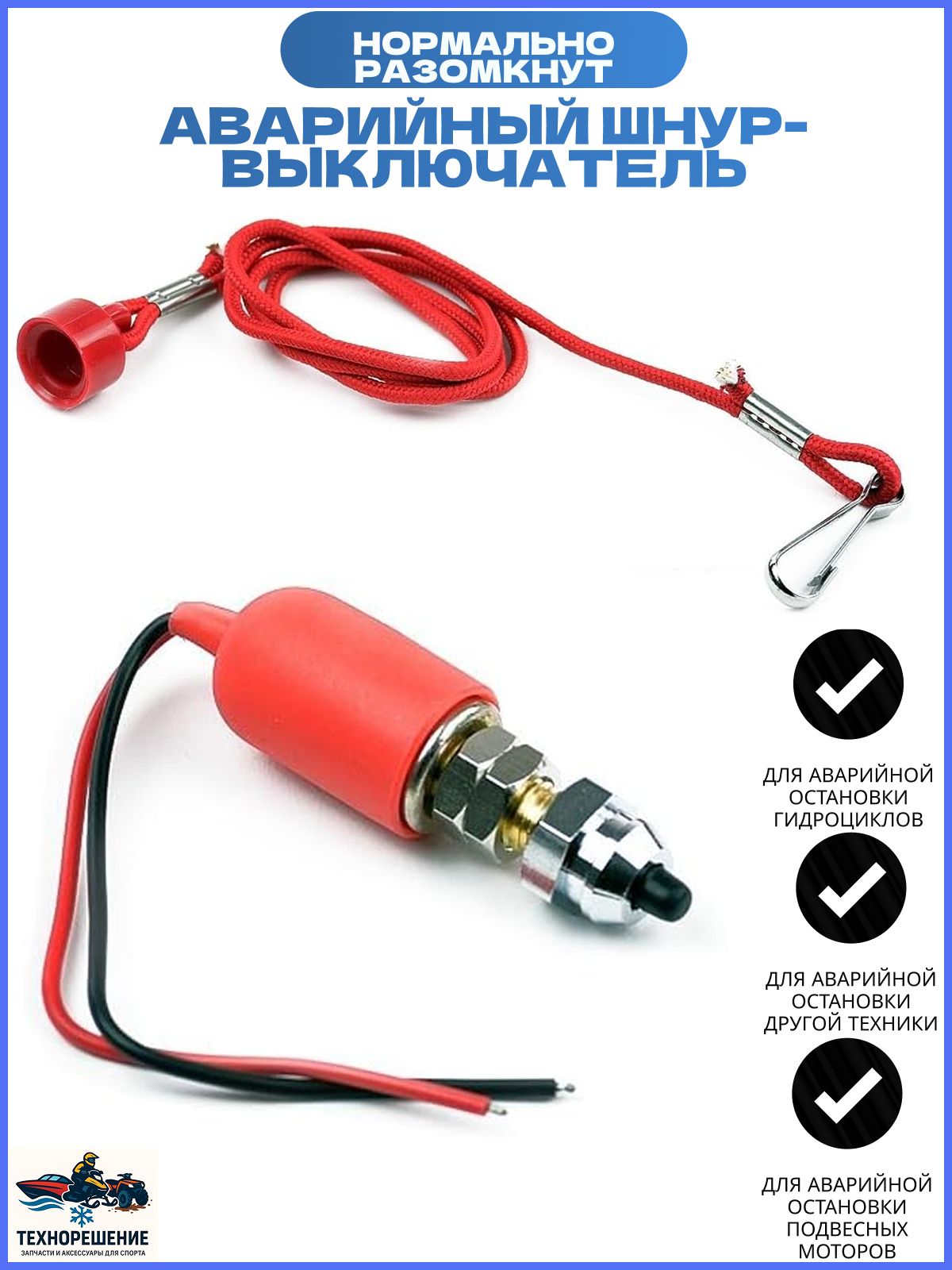 Шнур с карабином на одном конце и выключателем на другом. Применяется для аварийной остановки гидроциклов, подвесных моторов и т.п. механизмов. Шнур с помощью карабина крепится на одежде человека и в случае падения его за борт, размыкает контакты выключателя, останавливая двигатель. Это аварийный шнур-выключатель (выключатель экстренной остановки).