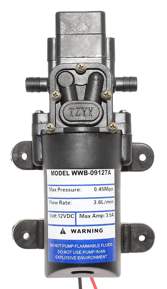 Автоматическая самовсасывающая диафрагменная электрическая помпа для подачи воды. Применяется для поддержания давления в бортовой водопроводной системе. Не повреждается при "сухой" работе. Рабочий элемент - 2 диафрагмы. Штуцеры под шланг с внутренним диаметром 10-11 мм.