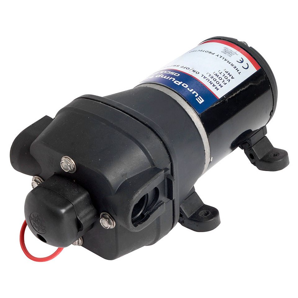 Автоматическая нагнетательная помпа "Europump 18", 12 В (10243923). Самовсасывающая электрическая диафрагменная помпа. Применяется для создания и поддержания постоянного давления в системах водоснабжения. Рабочий элемент с четырьмя диафрагмами и автоматический выключатель обеспечивают плавную малошумную работу. Не повреждается при "сухой" работе. В комплекте: фильтр, пара резьбовых штуцеров 1/2 дюйма и пара штуцеров под шланг внутренним диаметром 14 мм.