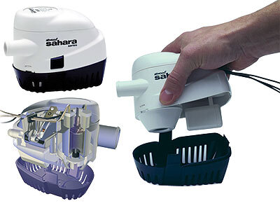Автоматическая трюмная помпа "Sahara 1100" (10243897). Новинка! Автоматические трюмные помпы максимальной производительностью 33, 48 и 70 л/мин. Применяются для откачки трюмной и подсланевой воды. Имеют встроенные поплавковые выключатели (без ртути!). Автоматически включаются при поступлении воды (при всплытии поплавкового выключателя). Также могут принудительно включаться владельцем судна. Снабжены рукоятками, позволяющими протестировать работоспособность автоматического выключателя, не разбирая помпу и не устраивая "учебного затопления". Провод питания длиной 90 см позволяет разместить место подключения (место пайки, скрутки проводов) на удалении от зоны, потенциально подверженной затоплению, что повышает надежность работы помпы. Помпы крепятся винтами через решетку фильтра. Верхняя часть помп легко снимается с решетки для чистки.