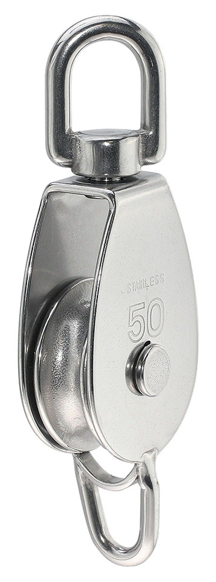 Блок одношкивный с вертлюгом и скобой "Мореман", 50 мм (10258944). Блоки из нержавеющей стали, одно- и двушкивные со шкивами 25, 32 или 50 мм.