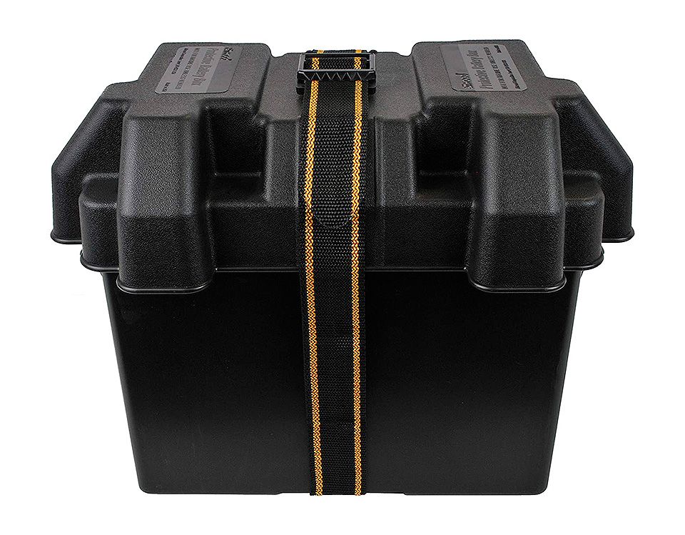 Бокс для аккумулятора "Standard" (10010193). Вентилируемый бокс для аккумулятора из полипропилена. Снабжен удобными рукоятками со скругленными кромками и прочным ремнем, рассчитанным на 150-килограммовую нагрузку. Не подвержен действию кислот. Защищает аккумулятор от брызг, а трюм – от коррозии под действием вытекшего электролита. Внутренние размеры (длина, ширина, высота): 282х197х257 мм. Внешние размеры (длина, ширина, высота): 355х244х270 мм. Производитель: "Attwood", США.