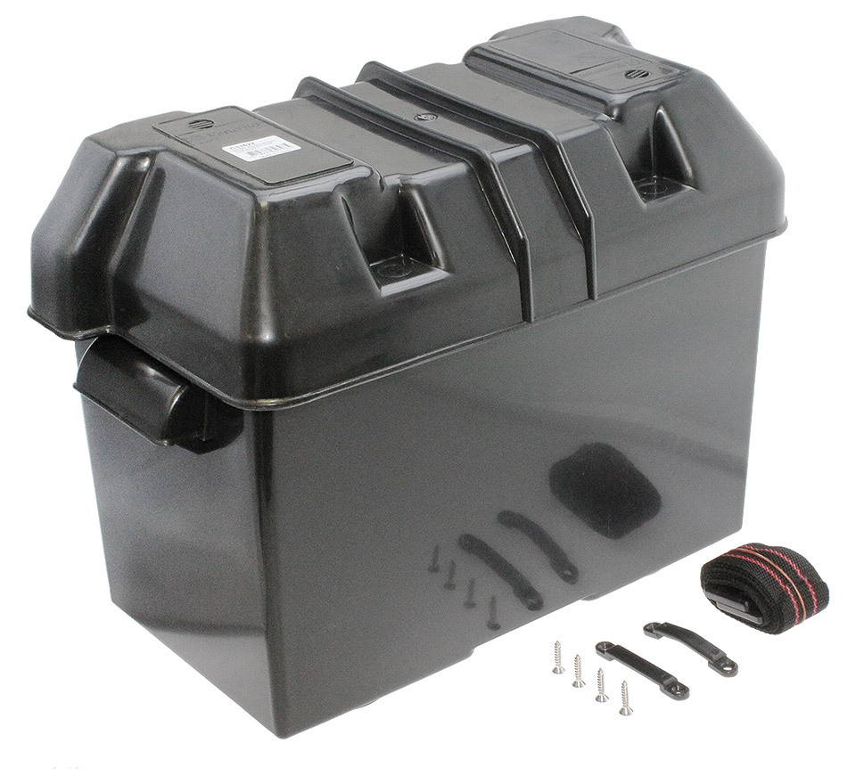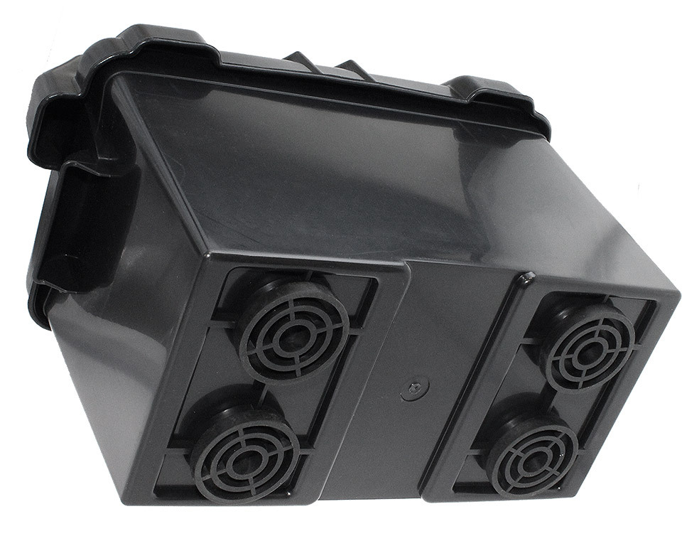 Бокс для аккумуляторной батареи с резиновыми подушками (10262734). Бокс для аккумуляторной батареи, снабженный резиновыми подушками-амортизаторами. Подушки предохраняют аккумулятор от вибрации и препятствуют смещению бокса под действием вибрации.Внутренние размеры:Длина: 343 мм.