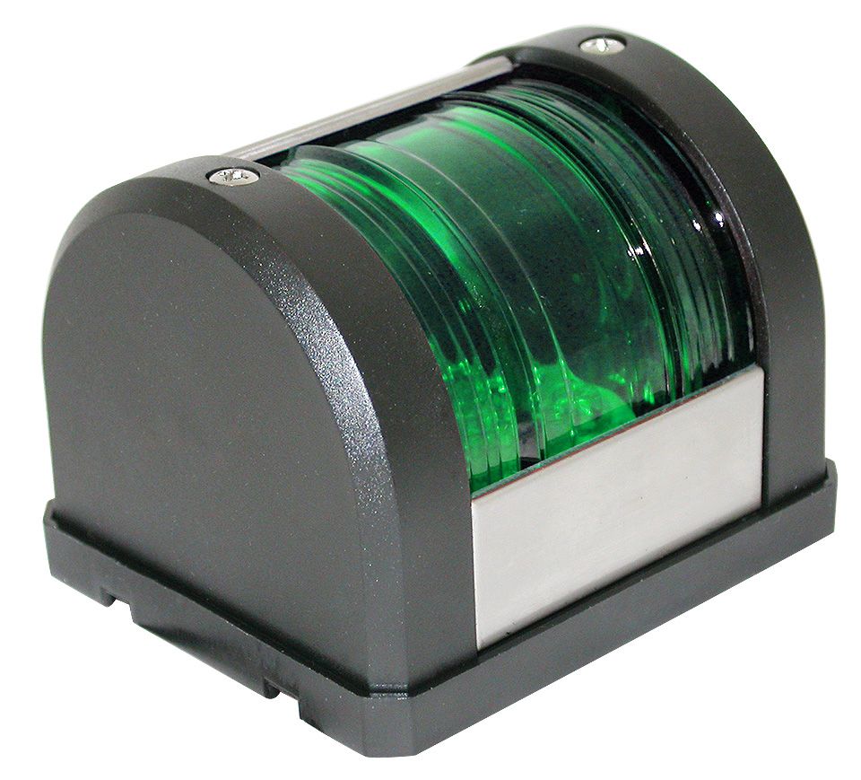 Бортовые навигационные огни (красный и зеленый). Устанавливаются на правом и левом бортах судна. Обеспечивает освещение секторов с углом в основании 112,5 градусов. В корпусах из пластика черного цвета. Доступны в двух вариантах - с лампами накаливания или со светодиодами. Размер: 70*55*55 мм. Напряжение питания: 12 В. Страна-производитель: Тайвань.