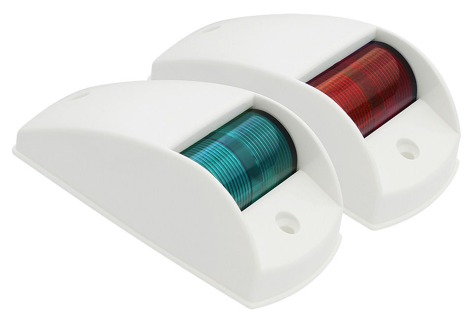 Бортовые навигационные огни (красный и зеленый). Устанавливаются на правом и левом бортах судна. Обеспечивает освещение секторов с углом в основании 112,5 градусов. Продаются парами в корпусах из пластика черного и белого цветов. Используются лампы накала. Напряжение питания: 12 В. Производитель: "ТМС", Тайвань.