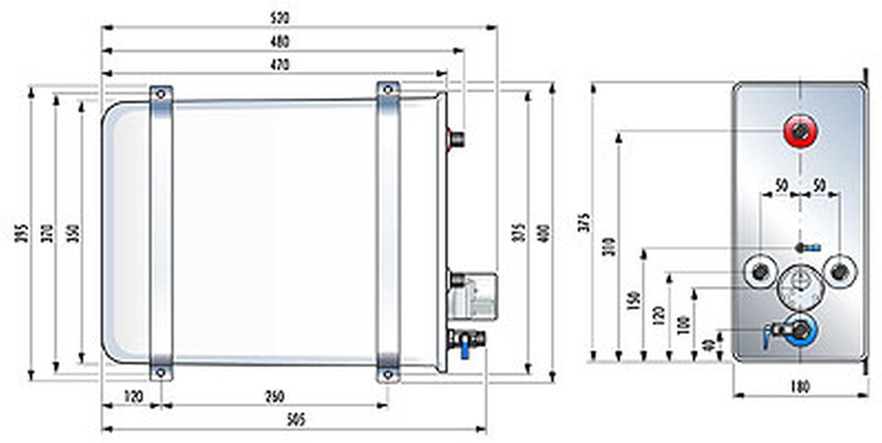 Бойлер, 16 л, 500 Вт, прямоугольный, с теплообменником. (10236299). Судовой бойлер. Позволяет нагревать воду с помощью ТЭНа (мощностью 500 либо 1200 Вт) от электросети напряжением 220 В, либо от системы охлаждения двигателя (горячий антифриз поступает в теплообменник, 3-метровую нержавеющую спираль, где отдает тепло нагреваемой воде). Поставляется в различных вариантах: с двойным нагревом (с теплообменником - от двигателя и ТЭНом - от сети 220 В), только с теплообменником, либо только с ТЭНом. Бак для воды изготовлен из нержавеющей стали. Внешний корпус – пластик. Теплоизоляция выполнена из полиуретановой пены. В стандартную комплектацию входит предохранительный невозвратный клапан, обеспечивающий постоянное наполнение бойлера водой и защиту от избыточного давления (он же позволяет спустить воду перед зимним хранением). Максимальная температура нагрева от сети 220 В регулируется с помощью термостата в пределах 40-80 градусов Цельсия (заводская настройка – 60 градусов). Максимальная температура нагрева от системы охлаждения двигателя зависит от интенсивности работы двигателя и настроек термостата его штатной системы охлаждения.Максимальное давление воды в баке: 6 Bar.Производитель: "Quick", Италия.