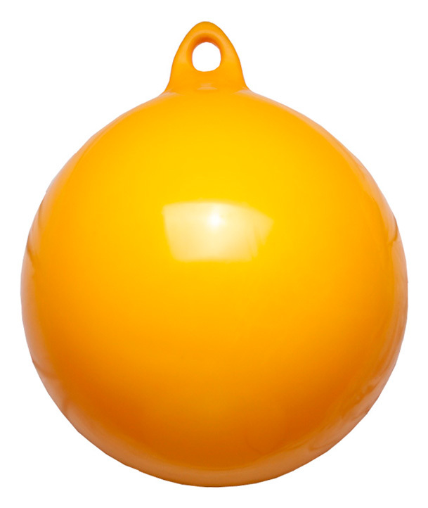 Пластиковый надувной буй с одним рымом. В линейке представлены изделия диаметром: 15, 21, 35 см, высотой: 21, 28, 40 см. Цвет: желтый, оранжевый. Производитель: "Majoni", Голландия.