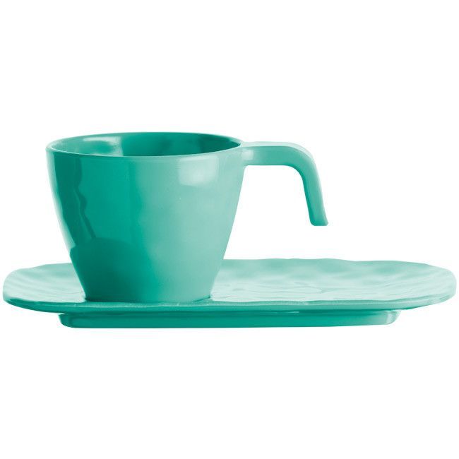 Чашки и блюдца из меламина - стойкого к ударам и царапинам керамоподобного пластика.