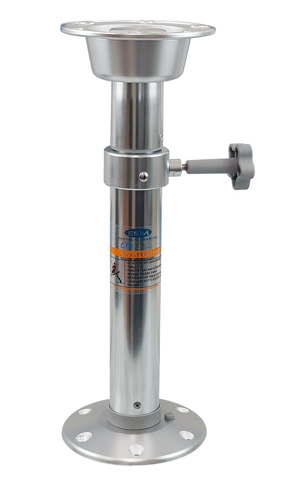 Демонтируемая стойка для столешниц. Анодированный алюминий. Возможность поворота столешницы вокруг вертикальной оси. Стопор для предотвращения самопроизвольного отворачивания. Основание не имеет врезаемой части и может быть закреплено на любой плоской поверхности! Смонтировав дополнительные основания, можно устанавливать стол в любой части судна.