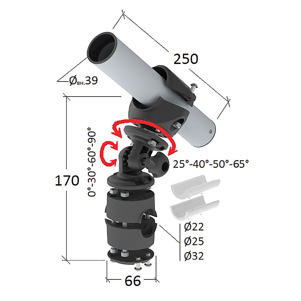 - возможность установки на леер диаметром 22, 25, 32 мм.
