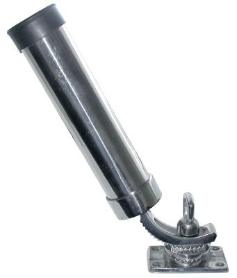 Держатель удилища из полированной нержавеющей стали. Фланец с резиновой окантовкой для предупреждения повреждения удилища. Изменяемый угол наклона. Крепление четырьмя винтами на плоскую поверхность. Производитель: Китай