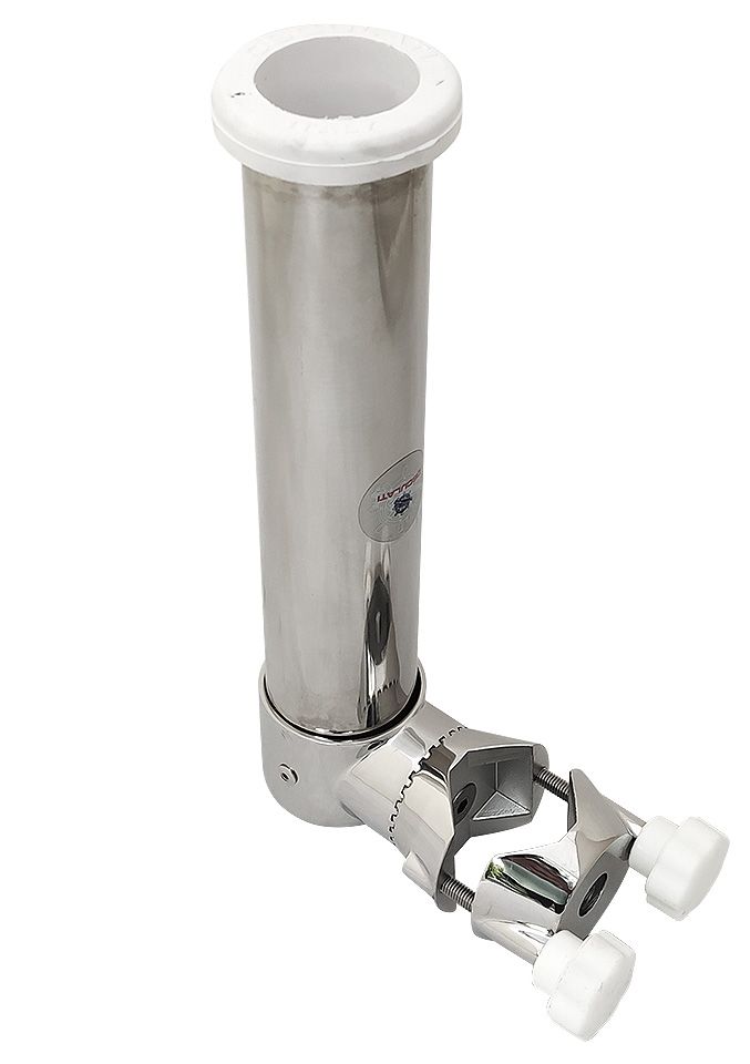 Стакан-держатель удилища из нержавеющей стали с зажимом под трубу релинга (диаметром 20-30 мм) или ролл-бара (диаметром 35-40 мм). Фланец с резиновой окантовкой для предупреждения повреждения удилища.Страна-производитель: Италия.
