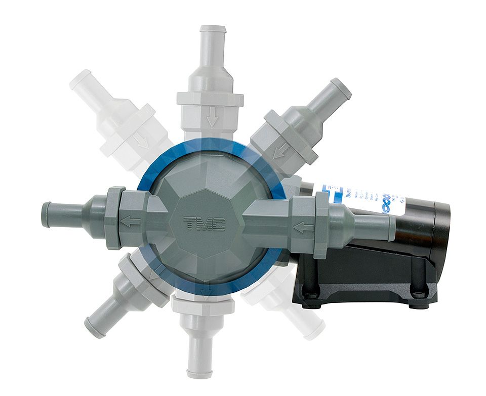 Диафрагменная помпа для откачки фекальных и сточных вод без предварительного измельчения. Не повреждается при сухой работе, не требует наличия предварительного фильтра. Способна перекачивать водо-воздушную смесь. Встроенные невозвратные клапаны большого проходного сечения позволяют пропускать твердые частицы значительных размеров. Патрубки могут быть повернуты на 360 градусов для удобства установки и стыковки со шлангами. Также может быть повернут весь диафрагменый блок. Может быть использована в качестве трюмной помпы (есть возможность замены штатных 38-мм патрубков на патрубки 19-мм). Отличается чрезвычайно высоким напором (высотой подачи жидкости) — до 20 метров. Расчитана на цикличную (не непрерывную) работу.