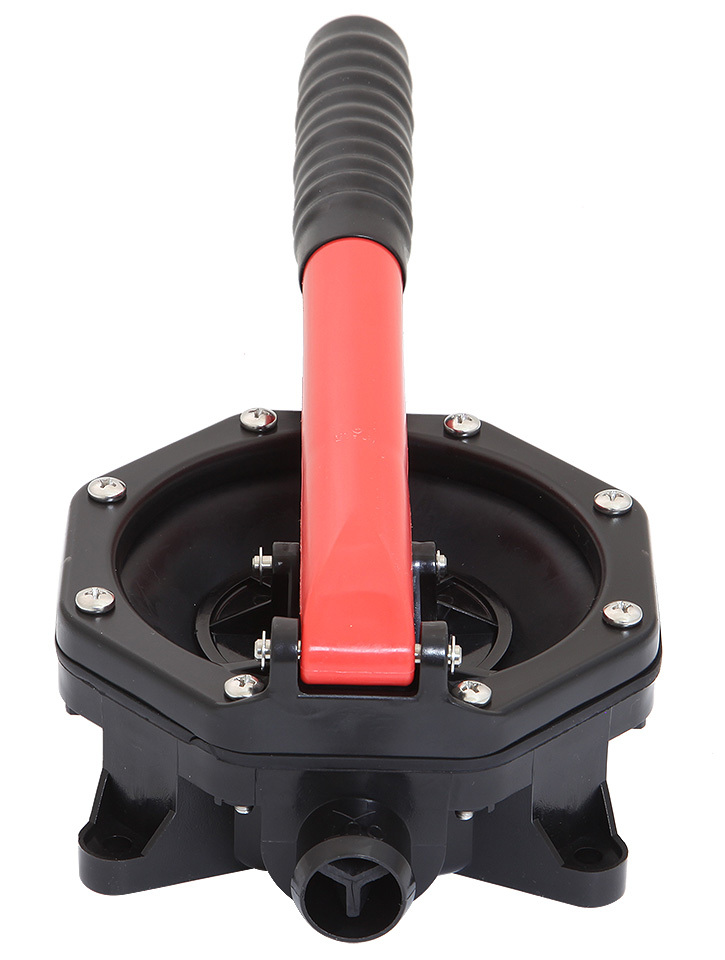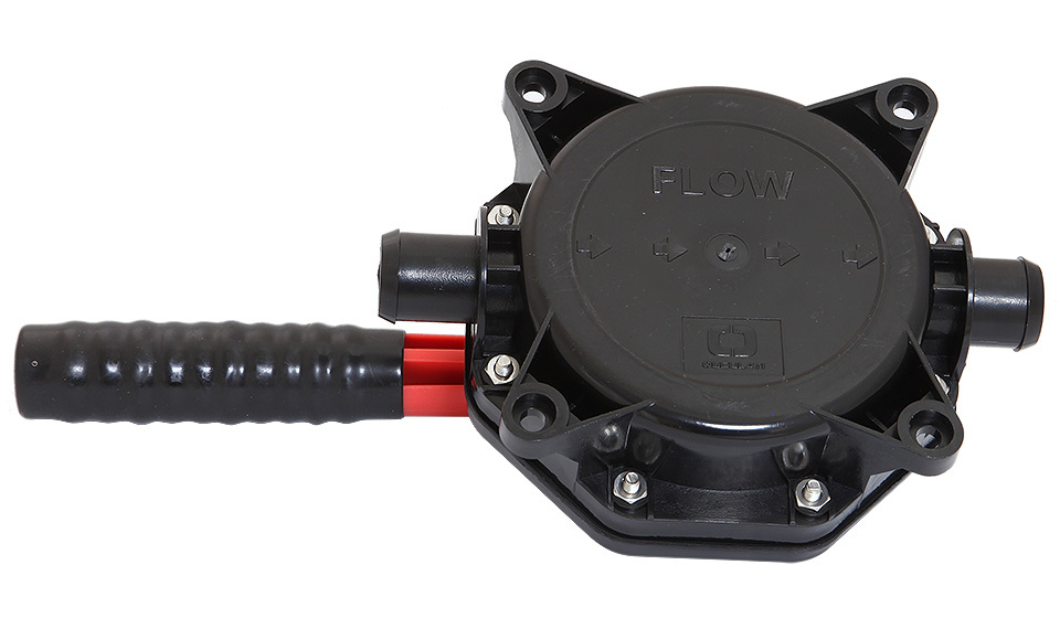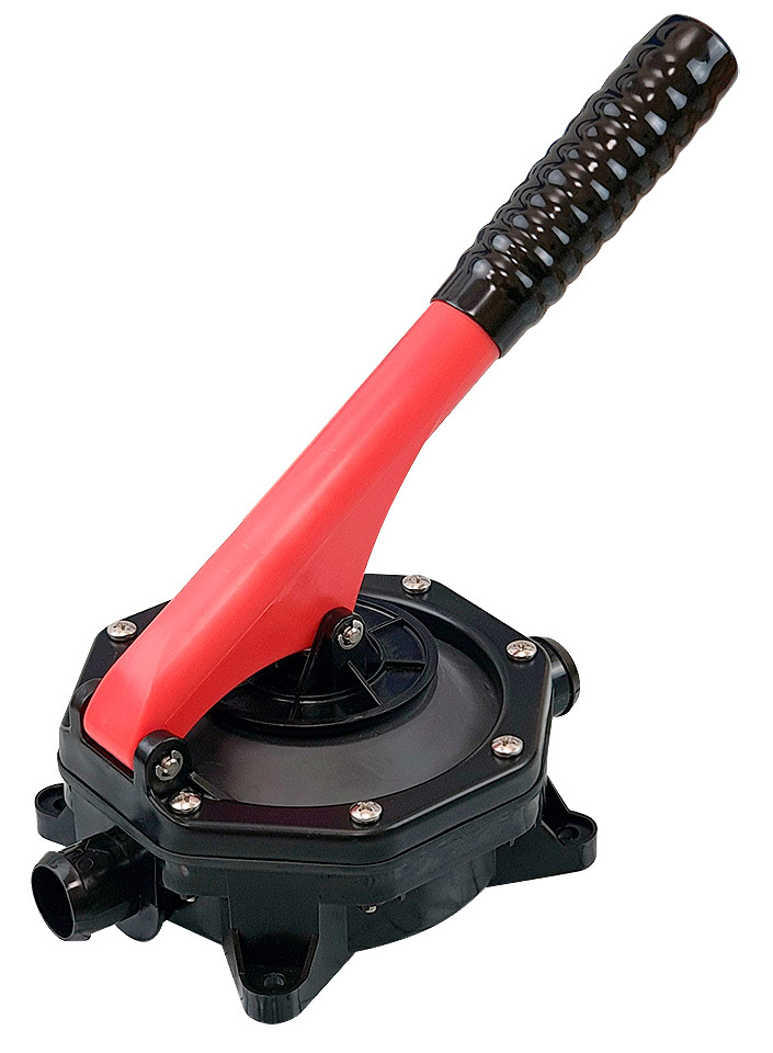 Диафрагменная ручная помпа для откачки воды. Может использоваться для перекачки воды в системах водоснабжения и канализации. Корпус из высокопрочного пластика "Delrin". Неопреновая диафрагма. Нержавеющий крепеж. Диаметр патрубков: 25 мм. Производительность: до 20 л/мин (при 60 циклах в минуту). Вес: 500 г. Размеры: 300x130x75 мм.