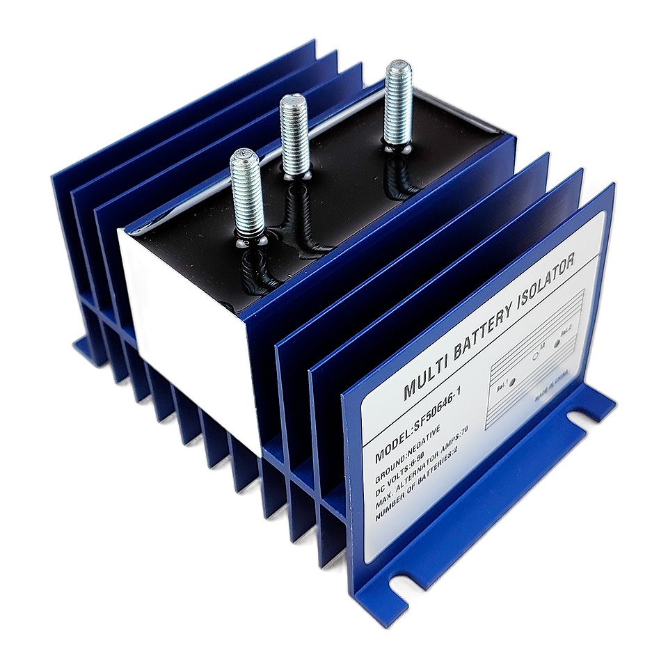 Диодный разделитель, 70 А, 2 батареи (10269237). Диодный разделитель аккумуляторных батарей. Позволяет заряжать две аккумуляторные батареи от одного источника тока, не допуская перетекания тока между батареями.Страна-производитель: Китай.