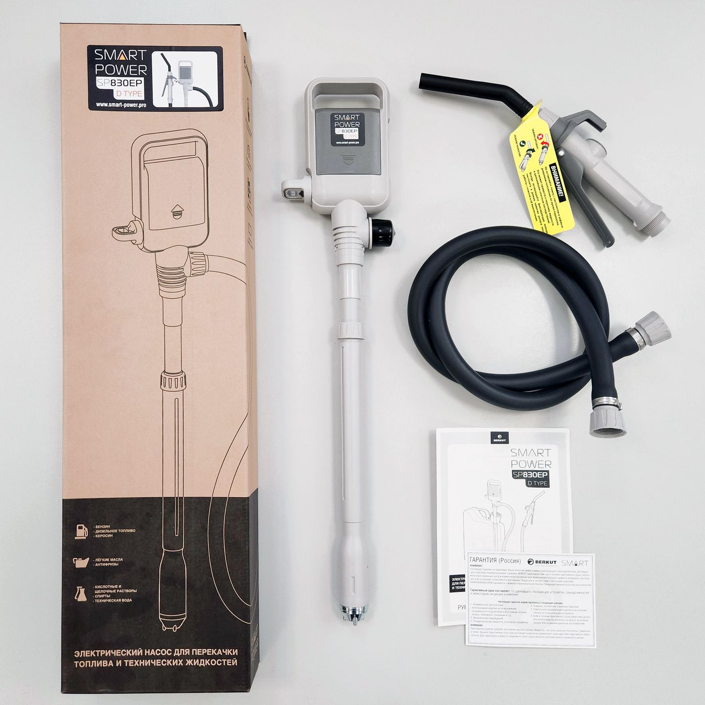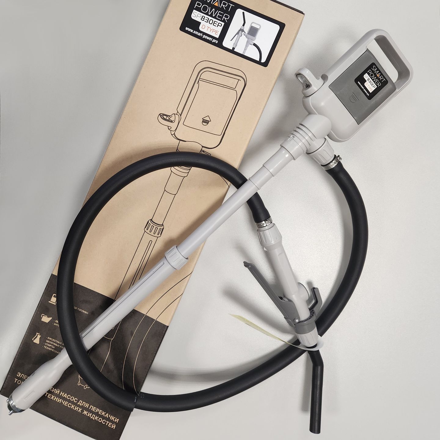 Электрический насос для перекачки топлива с авт. выкл, и телескопической трубкой 9,5 л/мин (10268824). Электрический насос SMART POWER SP-830EP станет незаменимым помощником, если срочно потребуется перелить топливо из канистры или небольшой бочки в бензобак автомобиля, мотоцикла, моторной лодки, газонокосилки, бензоинструмента, генератора и другой техники (или, наоборот, из бака в канистру). Работает насос от батареек D-типа, что позволяет использовать ее дистанционно в любом удобном месте. Максимальный объём жидкости, которую можно перекачать от одного комплекта батареек, составляет до 4000 литров. При этом скорость перекачивания достигает 9,5 л/мин.. Имеет специальный телескопический раздвижной шток, который позволяет перекачивать жидкости из канистр различной высоты и маленьких бочек. Усиленный металлический наконечник надежно предохраняет корпус электромотора и увеличивает срок службы устройства. Модель оборудована высокопрочным резиновым шлангом длиной 120 см и заправочным пистолетом, позволяющим управлять потоком перекачиваемой жидкости простым нажатием и разжатием рукоятки. Имеет функцию автоматического отключения и чехол для удобного хранения.