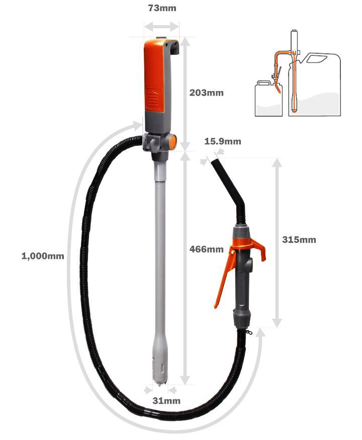 Электрический насос помогает решить проблемы, связанные с перекачкой технических жидкостей, а также используется для заправки бензоинструмента, специальных транспортных средств и в бытовых нуждах (например, слив и обслуживание аквариумов). Предназначен для перекачки бензина, дизельного топлива, керосина, легких масел, спиртов, тех. воды. Оснащен заправочным пистолетом. Работает от 2-х батареек D-типа.