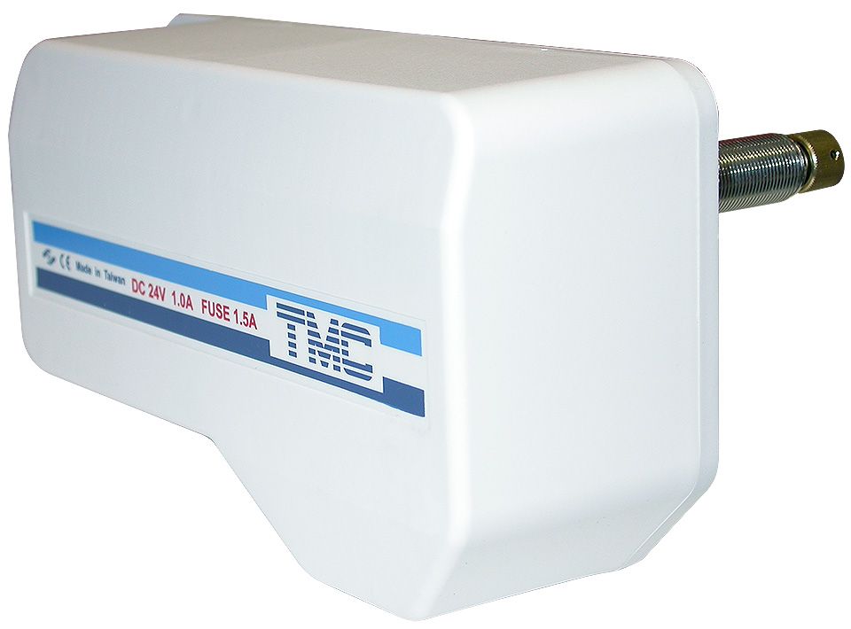 Электропривод стеклоочистителя "ТМС-906" с удлиненным валом, 24 В (10017242). Привод стеклоочистителя с мотором увеличенной мощности, удлиненным валом и декоративным пластиковым кожухом. Снабжен функцией автоматического возврата щетки в исходное положение (как в автомобиле - при выключении стеклоочистителя щетка не "зависает" посреди стекла). Угол размаха щетки регулируется. Удлиненный вал позволяет устанавливать привод на толстые стенки рубки или использовать его в комплекте с фальшвалом и поводком пантографного типа.Угол отклонения щетки (изменяется ступенчато): 83-100-110-120 градусов. Длина оси (резьбовая часть и общая): 50/85 мм. Напряжение питания: 12, 24 В. Производитель: "TMC", Тайвань.