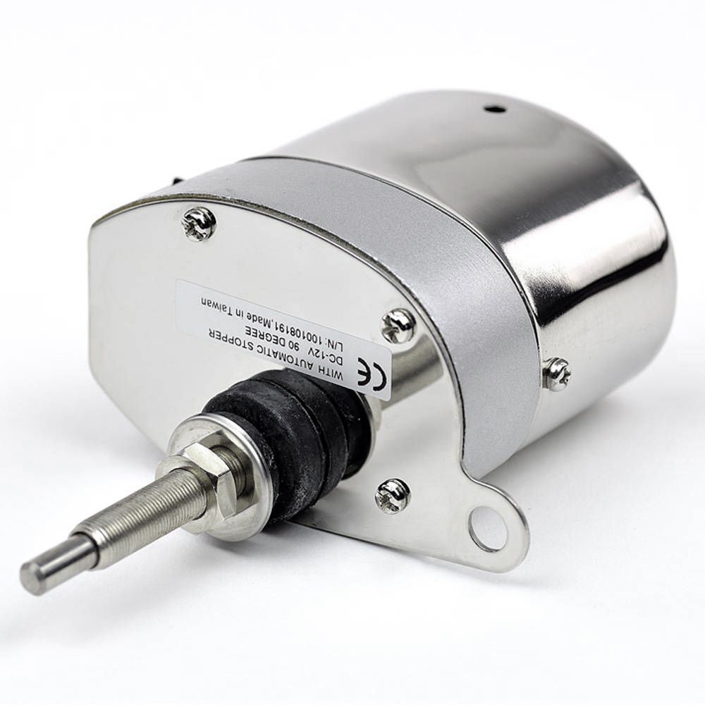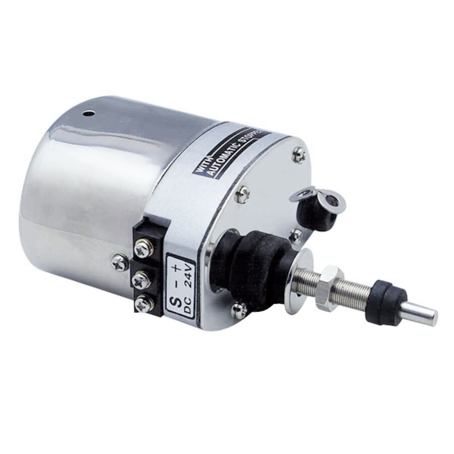 Электропривод стеклоочистителя в нерж. корпусе, 110 градусов (10006041). Компактный привод стеклоочистителя в корпусе из полированной нержавеющей стали. Снабжен функцией автоматического возврата щетки в исходное положение (как в автомобиле - при выключении стеклоочистителя щетка не "зависает" посреди стекла).