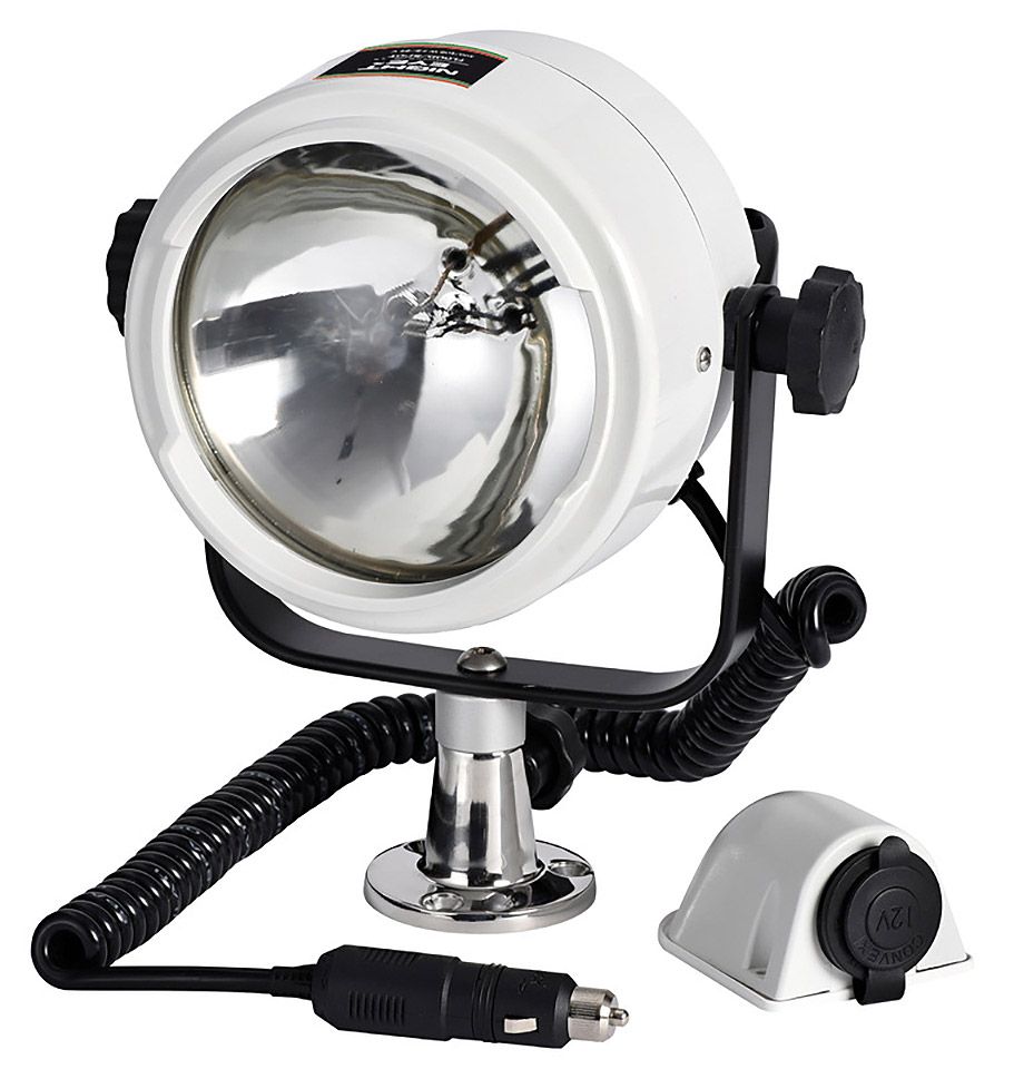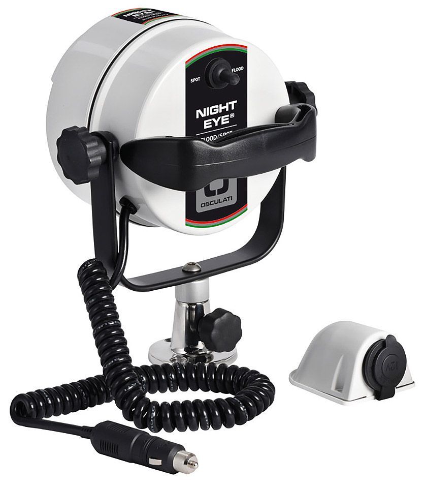 Фара-искатель светодиодная "Night Eye II" (10266135). Экономичная и яркая светодиодная фара-искатель. Дальний и ближний свет. Основание из нержавеющей стали (разъемное - фара может быть снята с основания). Спиральный шнур длиной 2 м. Универсальное питание 12-24 В. Потребляемая мощность: 24 Вт.