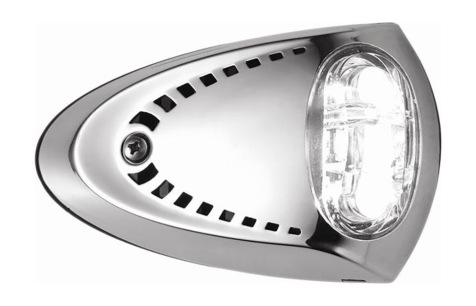 Фара светодиодная (швартовные огни), пара, корпус из нержавеющей стали (10252065). Новинка! Фара для установки в носовой части судна. Накладная конструкция - не требует врезания! Благодаря использованию светодиодов в качестве источника света отличается чрезвычайной экономичностью. По силе света сравнима с 55-ваттной галогеновой лампой, при этом потребляет всего 5 Вт. Поставляется в черном корпусе или с кожухом из нержавеющей стали.