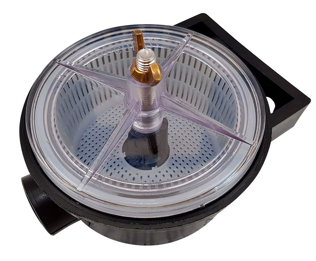 Фильтр забортной воды (10244758). Фильтр для грубой очистки забортной воды. Снижает износ крыльчатки насоса забортной воды, уменьшает загрязнение внешнего контура охлаждения двигателя. Прозрачная крышка дает возможность контролировать степень загрязненности фильтрующего элемента. Резьбовые патрубки 3/4 дюйма.