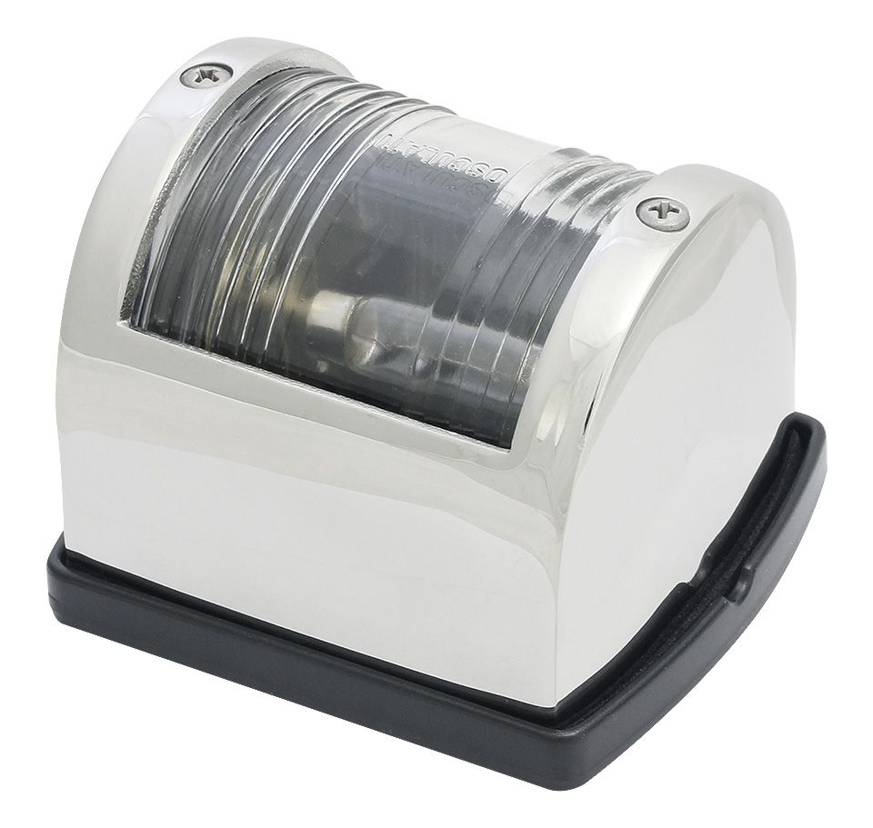Гакабортный навигационный огонь "Utility 77", нерж. сталь. (10014587). Белый навигационный огонь, устанавливаемый в кормовой части судна (на задней стенке каюты, на леере или флагштоке). Обеспечивает освещение сектора с углом в основании 135 градусов. Линза Френеля способствует распределению светового потока в горизонтальной плоскости, что увеличивает дальность видимости огня при неизменной мощности лампы. Рекомендуется для судов длиной до 12 м. Напряжение питания: 12 В. Номинальная мощность: 10 Вт. Материал корпуса: пластик или нержавеющая сталь. Цвет корпуса: черный или серебристый. Размеры: 70х60х60 мм. Страна-производитель: Италия.