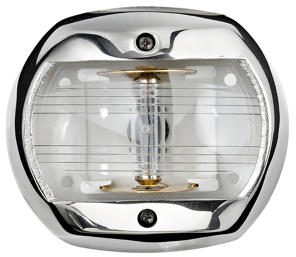 Гакабортный огонь "Classic 12", нерж. сталь (10237444). Белый навигационный огонь, устанавливаемый в кормовой части судна (на задней стенке каюты, на леере или флагштоке). Обеспечивает освещение сектора с углом в основании 135 градусов. Линза Френеля способствует распределению светового потока в горизонтальной плоскости, что увеличивает дальность видимости огня при неизменной мощности лампы. Рекомендуется для судов длиной до 12 м.