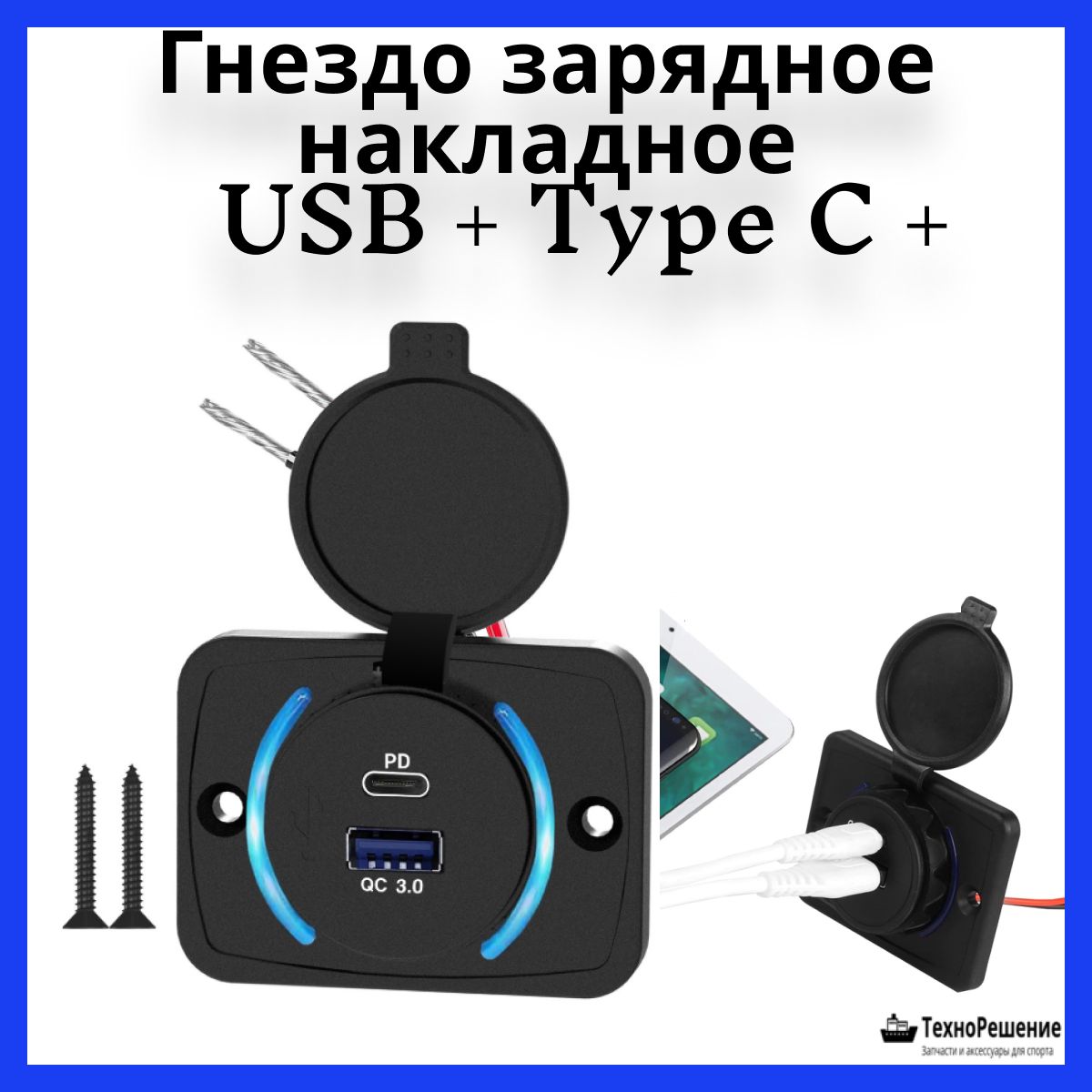Гнездо зарядное накладное, USB + Type C (10269779). Зарядное гнездо накладное, два зарядных порта: USB и Type C.Страна-производитель: Китай.