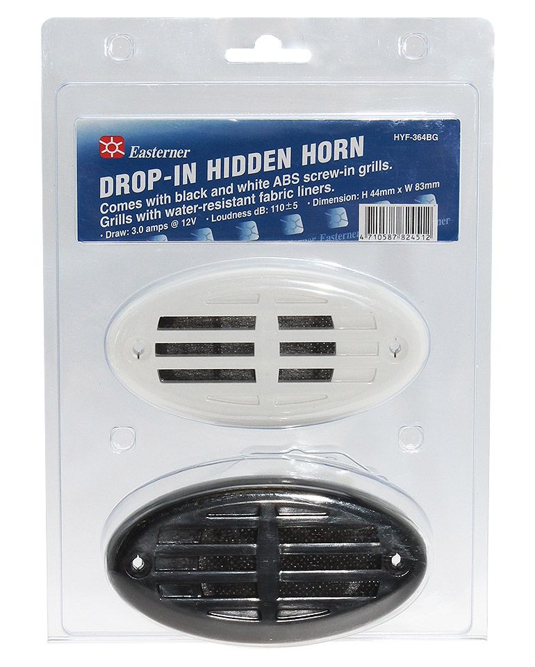 Горн врезной (10261740). Компактный врезаемый электрический горн. Поставляется с двумя (белой и черной) наружными декоративными решетками.