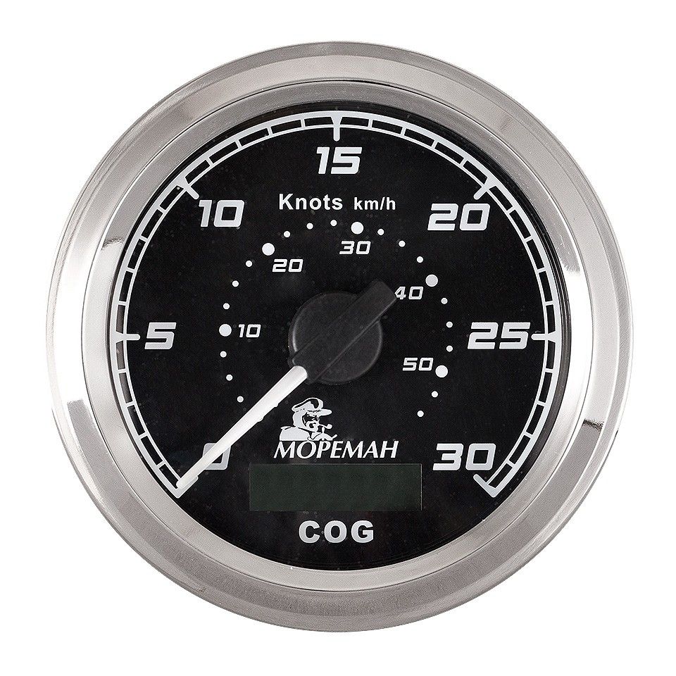 GPS спидометр,"Мореман" 30 узлов, черный циферблат (10252279). Отображают абсолютную скорость относительно земной поверхности. Двойная шкала узлы-км/ч. Стойкое к царапинам стекло. Стрелка с силиконовым демпфером, гасящим вибрацию и предотвращающим дрожание. Белый или черный циферблат.