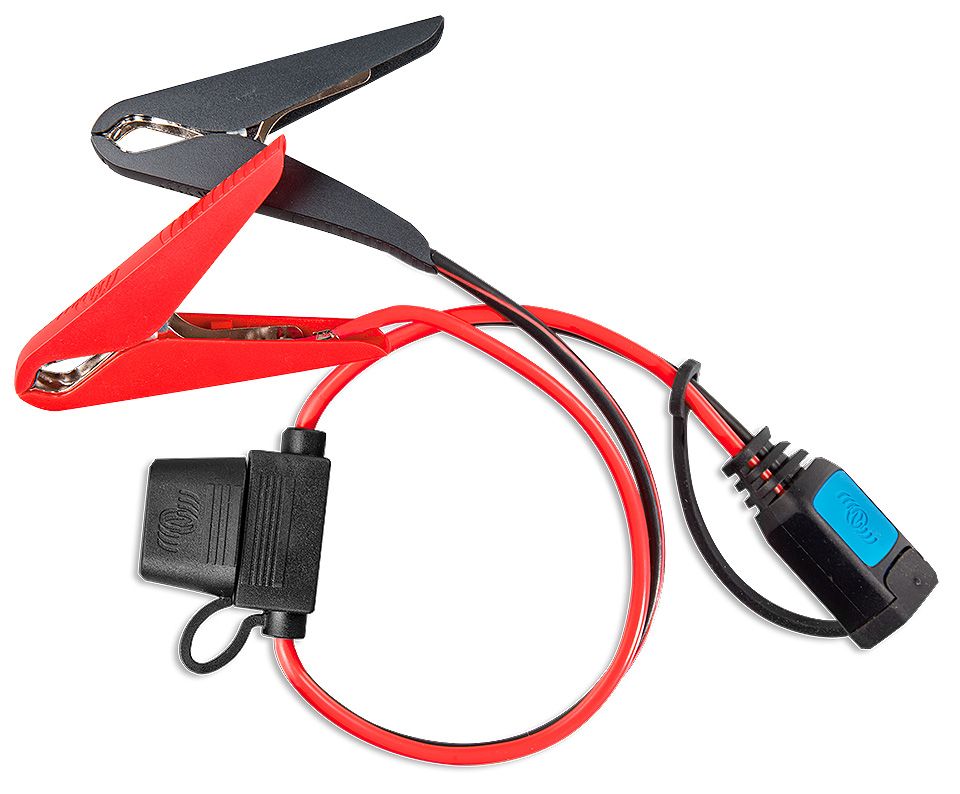Кабель с быстроразъемными зажимами и предохранителем (30 А) (10266889). Полностью водонепроницаемые (IP67) автоматические зарядные устройства с одним зарядным выходом. 5-стадийный алгоритм заряда. Возможность использования как для разовой зарядки, так и для работы в буферном режиме с целью постоянного поддержания аккумуляторной батереи в работоспособном состоянии (имеет функцию еженедельной подачи повышенного напряжения для борьбы с сульфатацией). Управление и мониторинг осуществляются с помощью смартфона, соединенного с зарядным устройством через Bluetooth (кнопки управления на корпусе устройства отсутствуют для обеспечения полной водонепроницаемости). Позволяют заряжать все основные типы свинцово-кислотных, а также Li-ion и LiFePO4 батарей. Снабжены защитой от переполюсовки, перегрева и короткого замыкания в зарядной цепи. Поставляются с клеммами под крепеж М8. Опционально можно приобрести кабель с быстроразъемными зажимами ("крокодилами", номер для заказа - 10266889).Максимальный зарядный ток: 13, 17, 25 А.Напряжение питания: 180-265 В.Производитель: "Victron energy".
