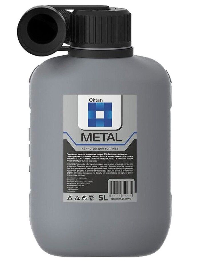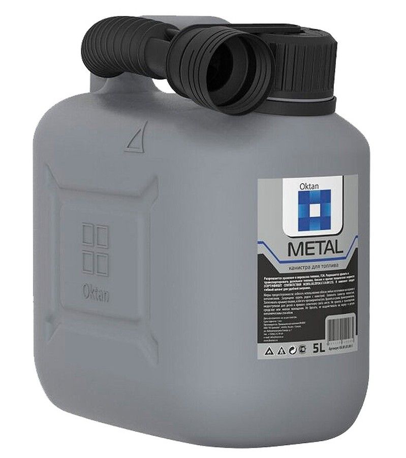 КАНИСТРА OKTAN Oktan Metal , серая, 5 л (10265013). Пластиковая канистра для ГСМ и технических жидкостей металлического цвета. Канистра снабжена крышкой с замком и гибким заправочным носиком.