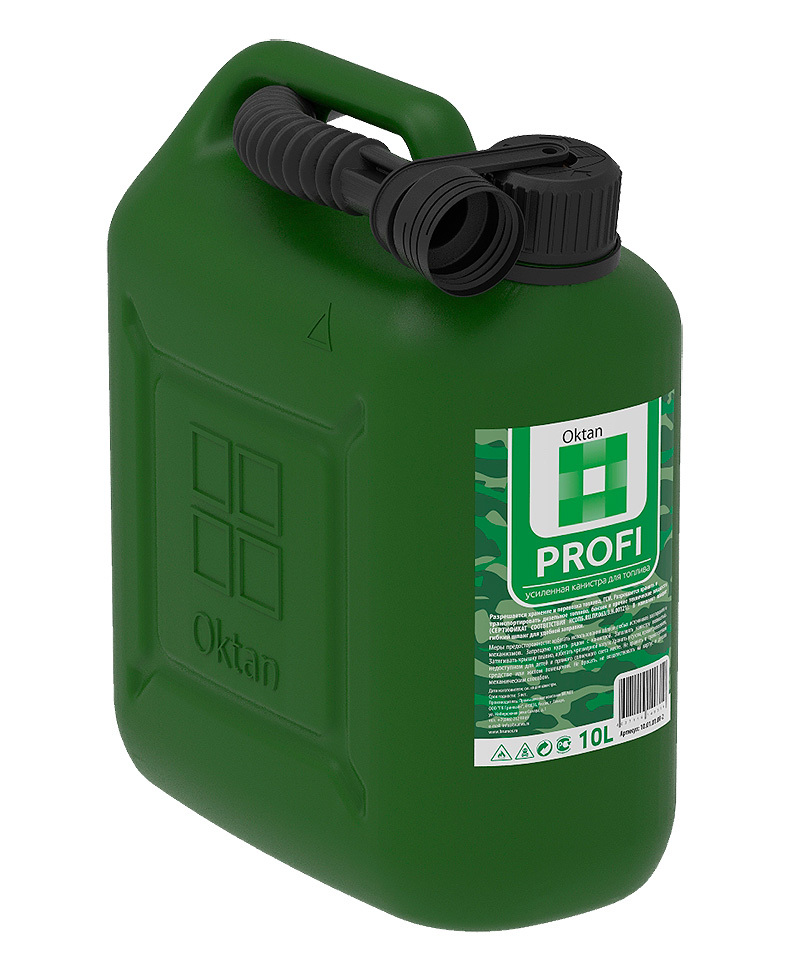 КАНИСТРА OKTAN Oktan Profi , зеленая, 10 л (усиленная) (10261417). Утолщенные стенки и усиленная конструкция позволяют выдержать самые высокие нагрузки при экстремальных условиях эксплуатации. Линейка канистр "PROFI" - идеальный выбор для любителей активного отдыха. Все канистры снабжены крышкой с замком, предотвращающим случайное открытие и гибким заправочным носиком для удобной заливки топлива через горловину бака транспортного средства.