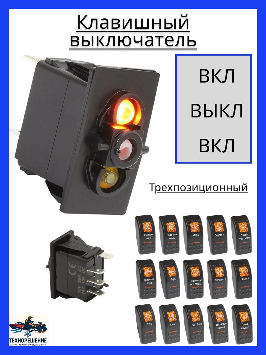 Клавишный выключатель, 2 светодиода, трехпозиционный, без клавиши (10264195). Клавишные выключатели в брызгозащитном исполнении (IP56). Снабжены оранжевыми светодиодными индикаторами, вызывающими минимальное утомление глаз в ночное время (2 светодиодных индикатора - подсветка и индикация включенного состояния). Представлены в трех вариантах исполнения (двухпозиционные, двухпозиционные с возвратной пружиной, трехпозиционные). Модели с возвратной пружиной рекомендуется использовать для подключения оборудования, работающего кратковременно (к примеру, сигнальные горны, сирены) или оборудования, работа которого должна быть возможна только под постоянным контролем оператора (к примеру, якорные лебедки). Внимание, клавиши в комплект не входят! Заказывайте клавиши с необходимыми символами отдельно! Произведены по специальному заказу компании "Мореман".