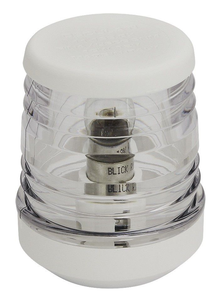 Клотиковый навигационный огонь в белом корпусе (10014965). Белый навигационный огонь с дугой освещения 360 градусов. Используется в качестве стояночного (якорного) огня. Правила допускают использование его в качестве универсального ходового огня на гребной лодке и парусной яхте длиной менее 7 метров (в этом случае, требуется еще и фонарь для освещения парусов, который включают при приближении другого судна). Линза Френеля способствует распределению светового потока в горизонтальной плоскости, что увеличивает дальность видимости огня при неизменной мощности лампы.Напряжение питания: 12 В. Номинальная мощность: 10 Вт. Материал корпуса: пластик. Высота: 74 мм. Диаметр: 60 мм. Цвет корпуса: белый, черный. Производитель: "Osculati", Италия.
