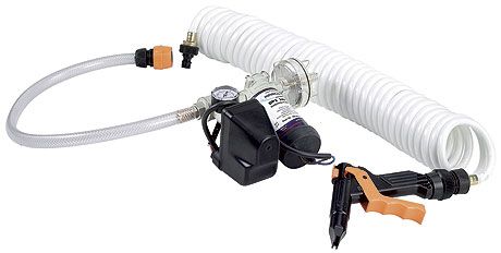 Комплект для мытья палубы (10246807). Комплект, включающий автоматическую самовсасывающую помпу производительностью 14 л/мин, витой шланг (10 метров в вытянутом состоянии), быстроразъемный соединительный штуцер и раздаточный пистолет с клапаном (с возможностью выбора пяти различных режимов струи - струя, душ, джет).