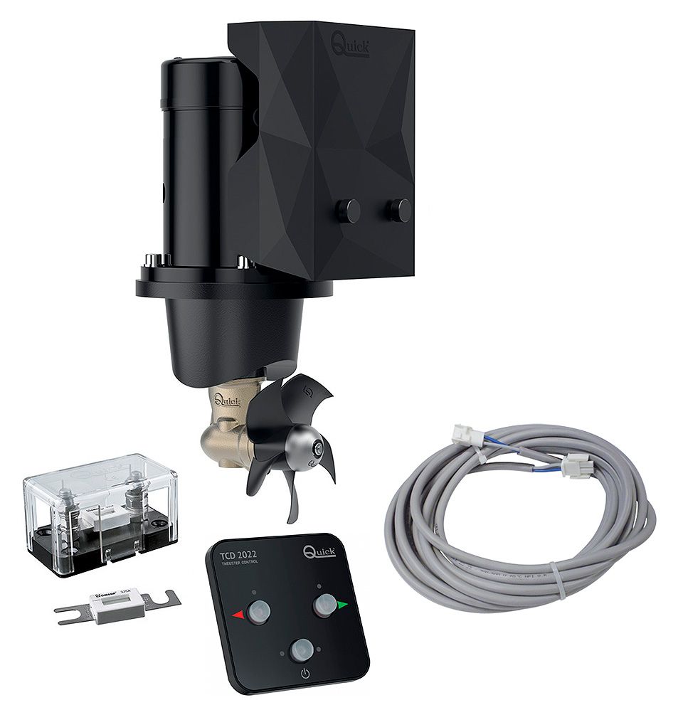 Комплект подруливающего устройства, 1,5 кВт, 30 кгс, 12 В, 125 мм (включает пульт TCD2022, 6-метровый кабель, без тоннеля) (10269686). Подруливающие устройства в комплекте со стеклопластиковыми тоннелями (часть моделей - см. описание товарных позиций), предохранителями, кабелями и пультами управления (джойстики или кнопочные - см. наименование конкретных моделей). Дополнительно следует приобрести лишь силовые электрокабели и кабельные наконечники