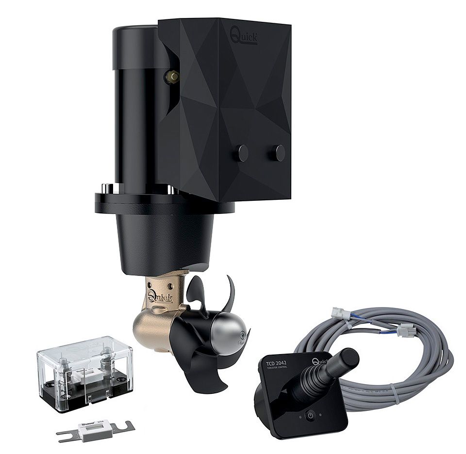 Комплект подруливающего устройства, 2,2 кВт, 40 кгс, 12 В, 140 мм (включает джойстик TCD2042, 6-метровый кабель, без тоннеля) (10269684). Подруливающие устройства с электрическим приводом. Легко устанавливаются и не требуют обслуживания. Предусматривают защиту от перегрева двигателя и задержку переключения реверса (при использовании пультов управления или джойстиков "Quick"). Редукторы винтов снабжены эластичными муфтами для снижения нагрузок при реверсировании.