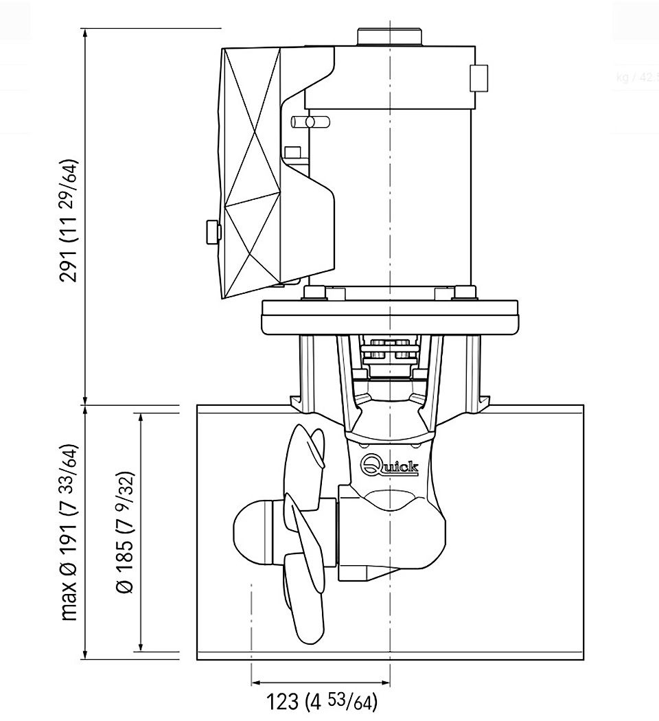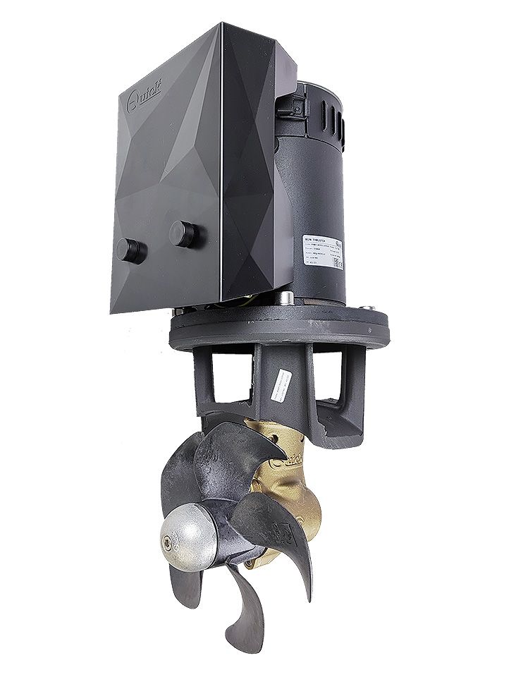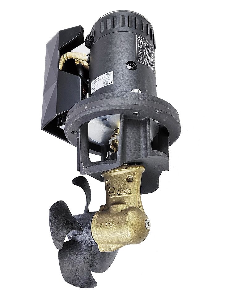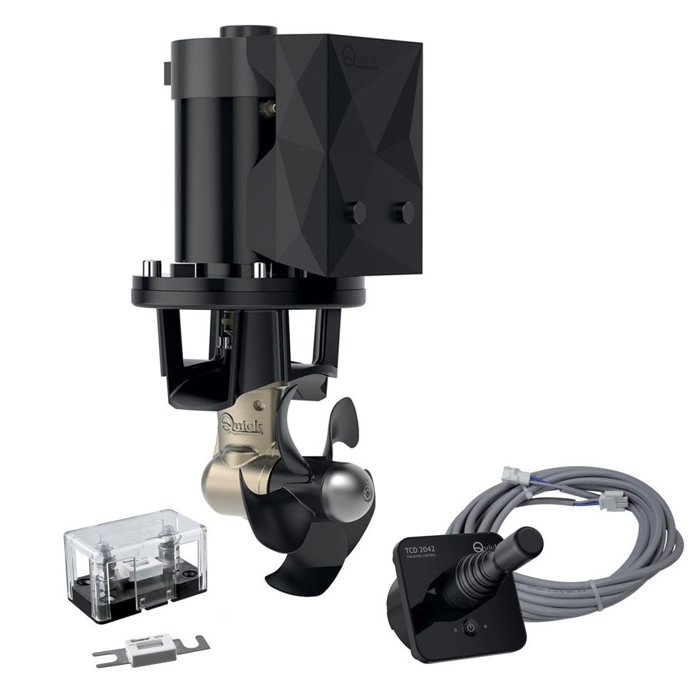 Комплект подруливающего устройства, 3 кВт, 55 кгс, 12 В, 185 мм (включает джойстик TCD2042, 6-метровый кабель, без тоннеля) (10269683). Подруливающие устройства с электрическим приводом. Легко устанавливаются и не требуют обслуживания. Предусматривают защиту от перегрева двигателя и задержку переключения реверса (при использовании пультов управления или джойстиков "Quick"). Редукторы винтов снабжены эластичными муфтами для снижения нагрузок при реверсировании.