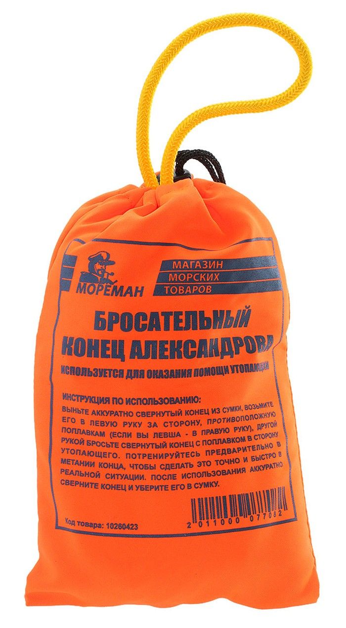 Конец Александрова утяжеленный 6мм*15м (10260423). Бросательный конец Александрова. Предназначен для оказания помощи утопающему. Имеет два ПВХ поплавка с утяжелением и 15 метров плавающего полипропиленового линя. Сумка для хранения в комплекте.Страна-производитель: Россия.