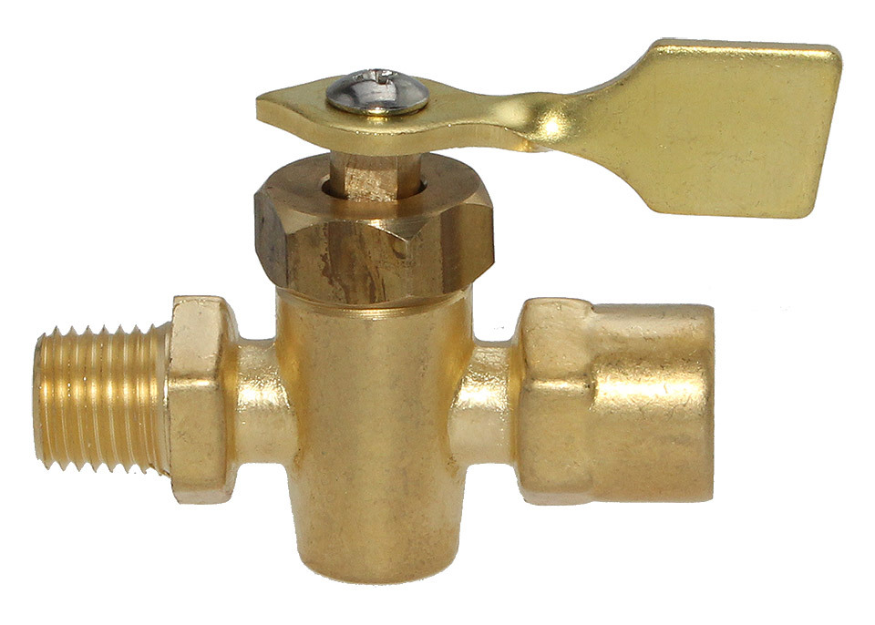 Двухходовый бронзовый топливный кран. Присоединительная резьба 1/4 NPT (одна наружная, одна внутреняя).