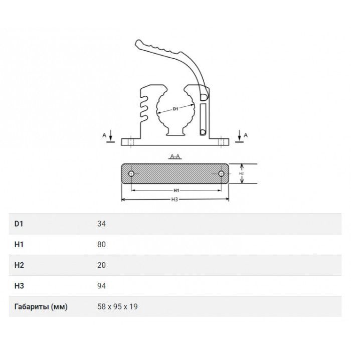 Размеры, мм. 58 x 95 x19