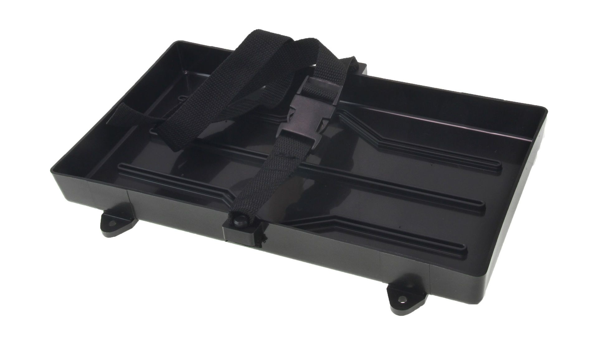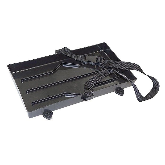 Крепление коробки аккумуляторной батареи Easterner C11499-S предназначено для надёжного хранения и эксплуатации аккумуляторной батареи. Данная модель состоит из прямоугольного прочного лотка с габаритами 330 х 180 мм, изготовленного из химически стойкой пластмассы, в который устанавливают аккумулятор, а также — ремня с храповым замком для обеспечения удобства фиксации батареи.