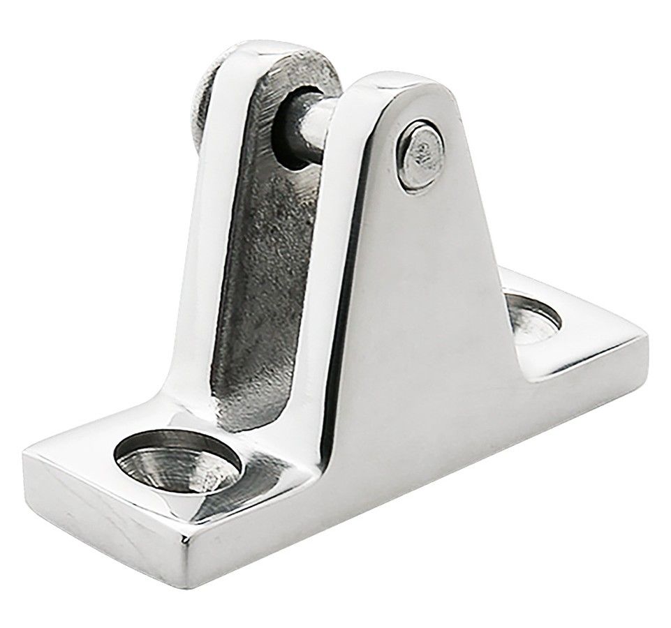 Кронштейн наклонный, "Мореман" (10005784). В отличие от предыдущей модели, проушины этого кронштейна составляют с основанием угол более 90 градусов. Материал: нержавеющая сталь. Длина основания: 2 дюйма. Ширина основания: 7/8 дюйма. Вес: 100 г. Производитель: Китай