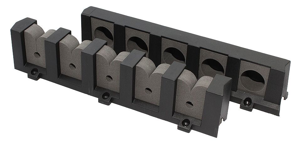 Кронштейн неопреновый для пяти удилищ, вертикальный (10261806). Кронштейны из пластика и неопрена для крепления удилищ в походном положении. Мягкие вспененные неопреновые вставки надежно закрепляют удилище, не повреждая его. Имеются модели на 3 и 5 удилищ. Крепятся в любом положении к любой плоской поверхности винтами или саморезами.