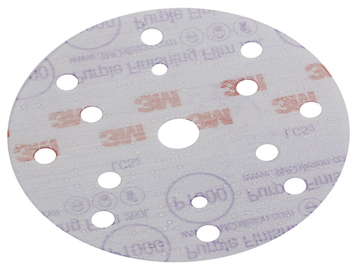 Круг абразивный шлифовальный Purple Hookit 260L, Р1000 (10260540). Специальные круги на пленочной основе, разработанные для тонкой деликатной шлифовки. Пленочная основа обеспечивает равномерное шлифование, предотвращая образование "ям". Круги имеют новое покрытие Frecut, которое увеличивает стойкость абразива к "забиванию", повышает производительность и ресурс круга, способствует эффективному выравниванию дефектов обрабатываемой поверхности, а также значительно сокращает количество шлифовальных рисок. Круги рекомендуются для высококачественного финишного шлифования, в том числе шлифования лаков, красок, стеклопластика. Особо рекомендуется применение данных кругов перед полировкой сильно выгоревшего стеклопластика с большим количеством рисок и царапин. Круги создают идеальную основу для дальнейшего восстановления с помощью полировальных паст (полиролей).Круги имеют универсальную перфорацию, совместимую с пылеотводами большинства эксцентриковых шлифовальных машин. Может использоваться для сухой или мокрой шлифовки.Диаметр: 150 мм.Зерно: Р600-Р1500 мм.Производитель: "3М", Англия.