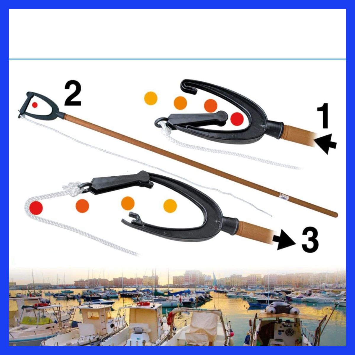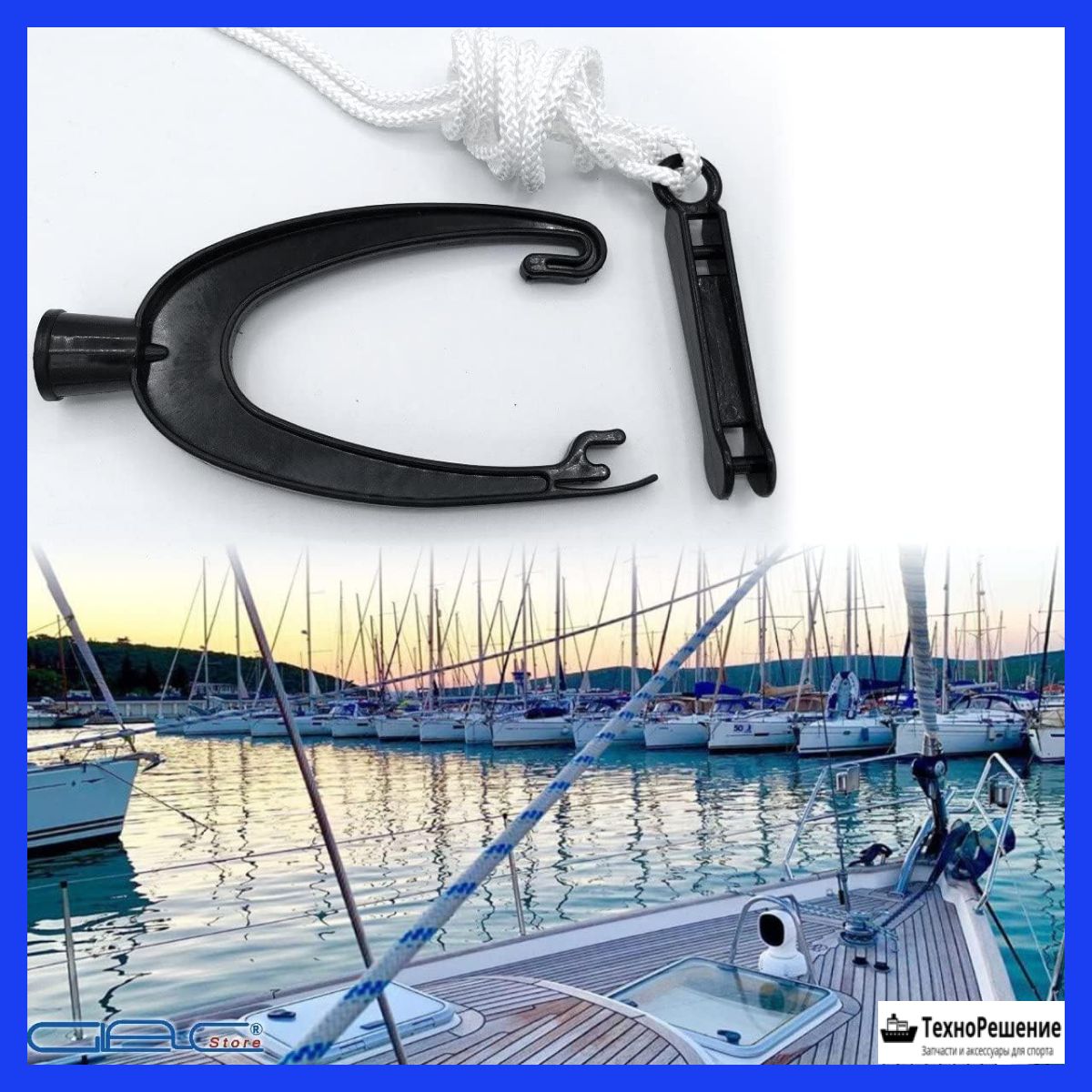 Крюк для выбирания и заводки концов серьгой. Специальный крюк для дистанционного продергивания швартова через рым. Резьбовое крепление. Совмести с телескопической рукояткой. Длина: 18 см. Ширина: 11 см. Длина фала: 1,5 метра Страна-производитель: Китай.